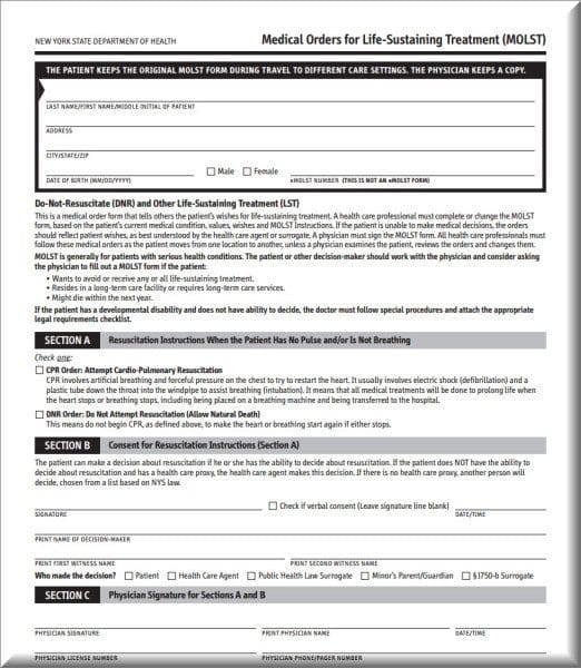 Medical Orders for Life-Sustaining Treatment NY State