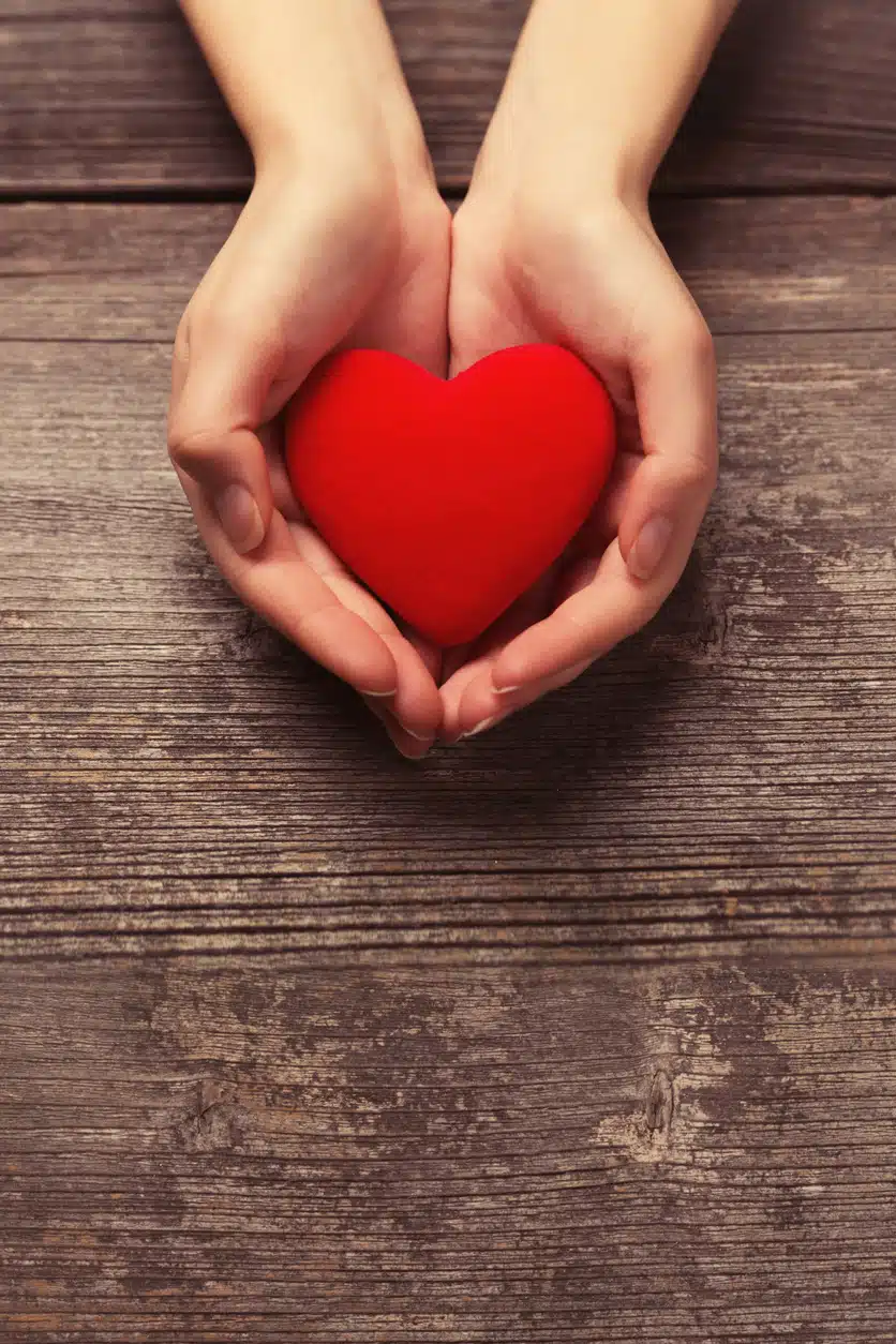 Female hands holding red heart